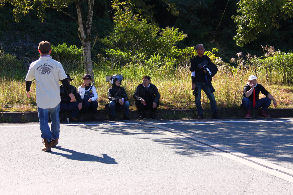 ここから並んで走るためバイクを並べます。