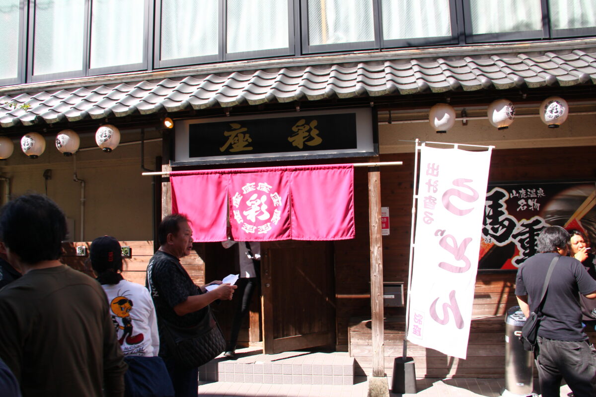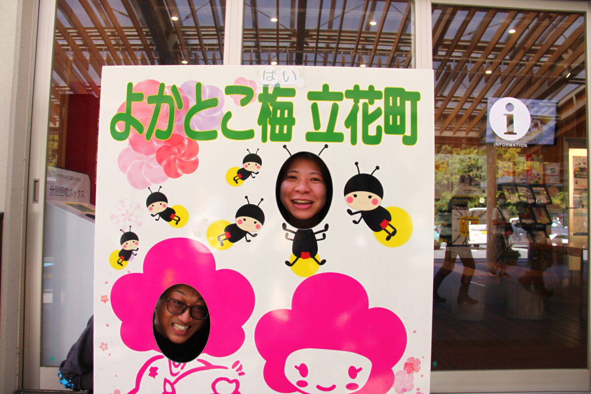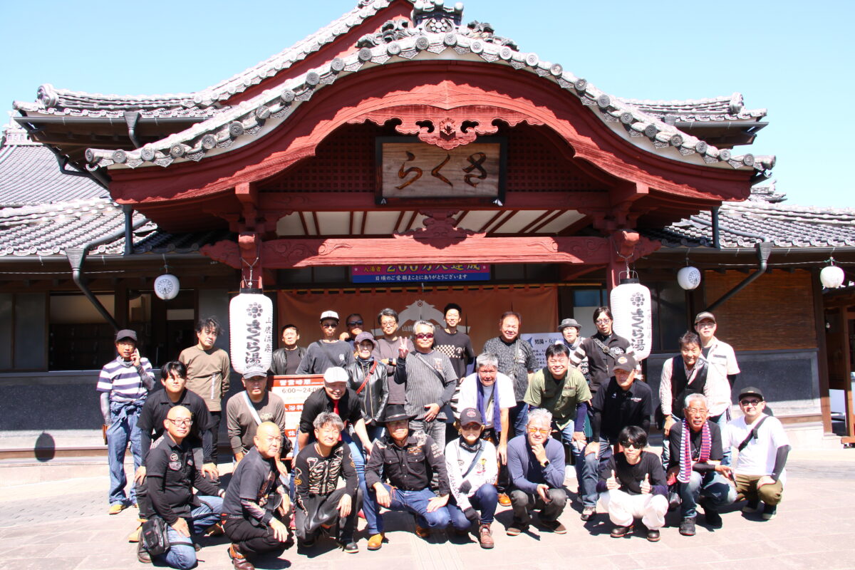 山鹿温泉「さくら湯」前で記念撮影。