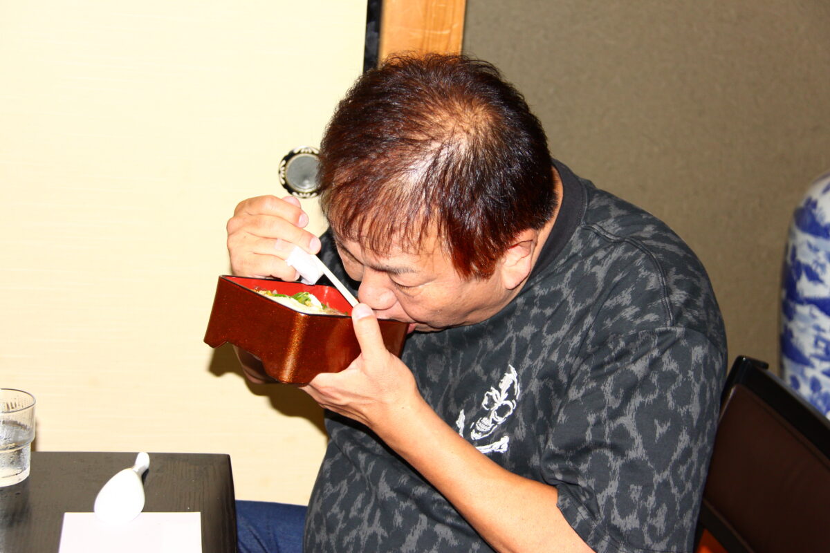 着席し、水をがぶ飲みしながら・・・