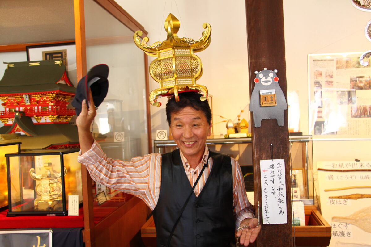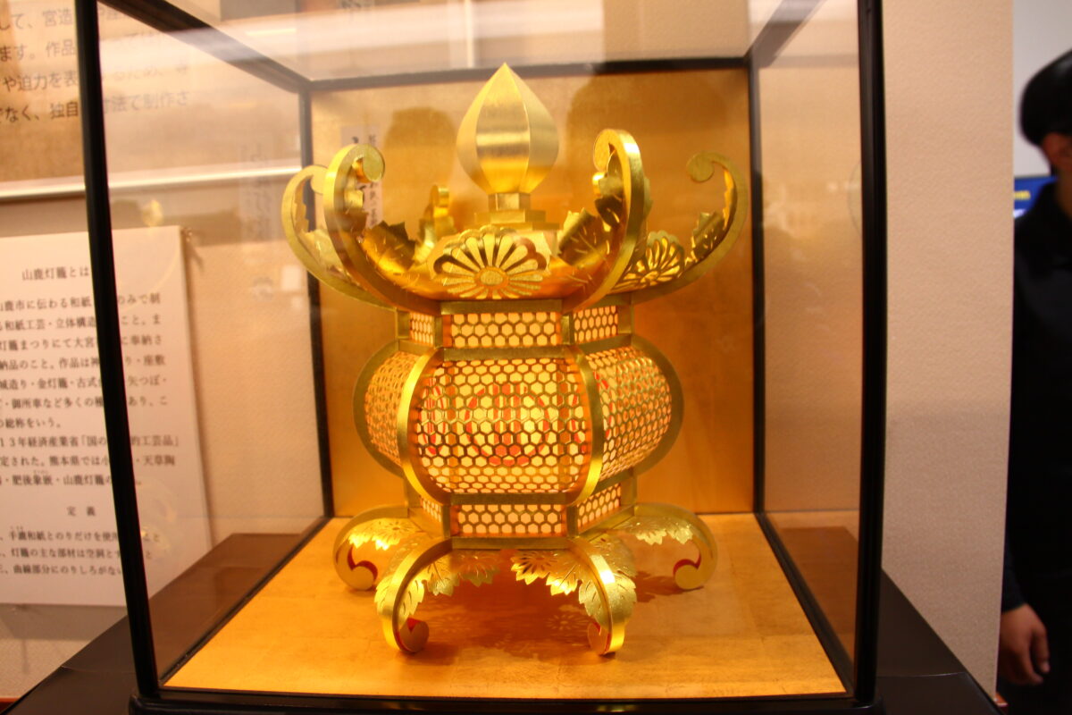 国指定伝統的工芸品「山鹿灯籠」。和紙と少量ののりだけで作られる山鹿灯籠は、その繊細さと美しさから和紙工芸の極致とも評されているそうです。